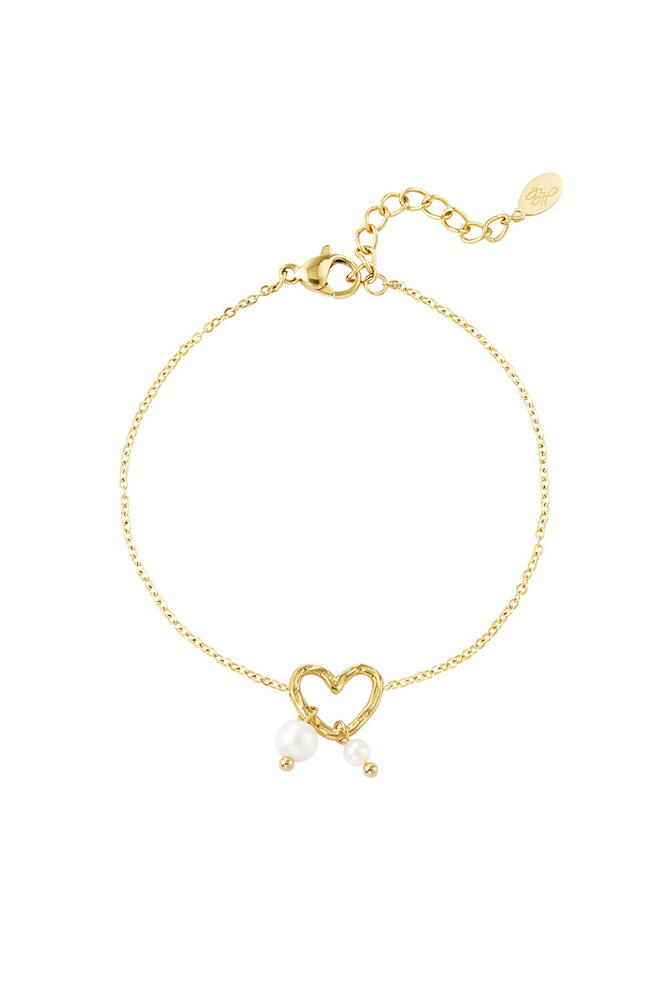 Bratara Inox Cu Inimioara Si Perle, Auriu