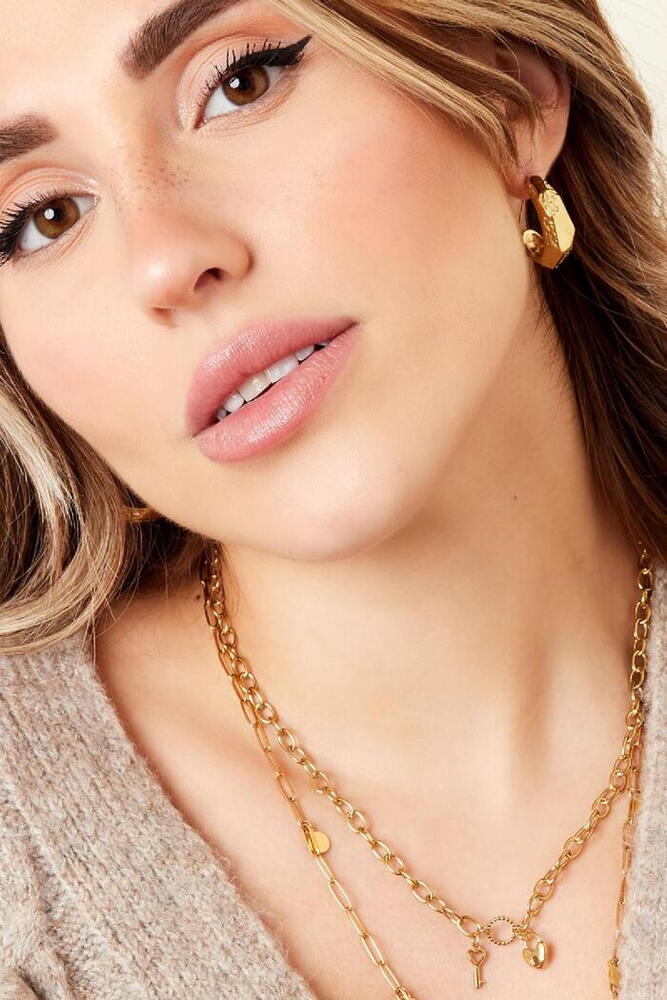 Colier Inox Cu Inimioara Si Cheie, Auriu