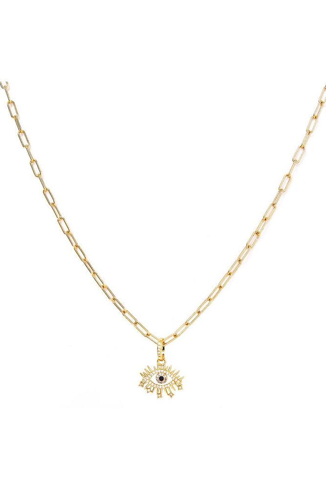 Colier Inox Si Zirconiu In Forma De Ochi, Auriu