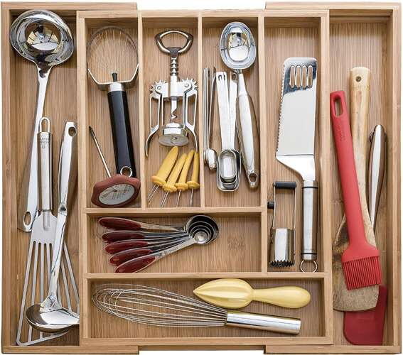 Transforma sertarul bucatariei intr-un spatiu organizat si practic cu acest organizator extensibil din bambus!