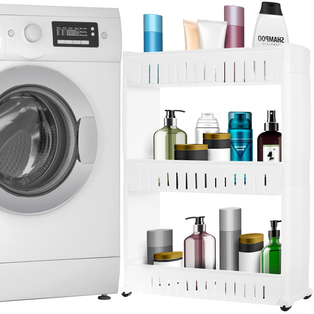 Raft de bucatarie sau baie, Mobil pe roti, Usor de asamblat si mutat, Universal, 3 nivele, Alb