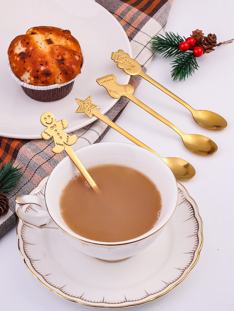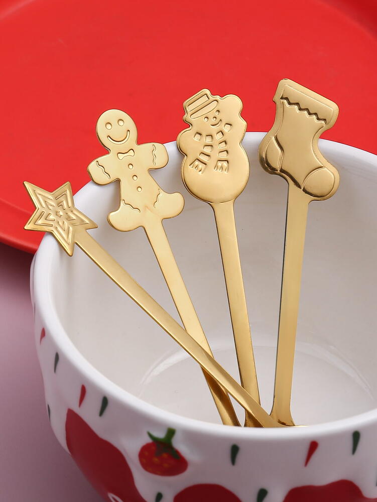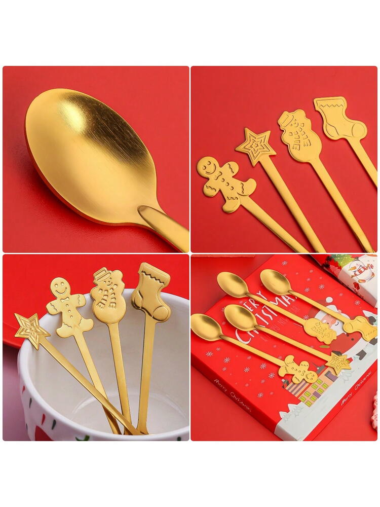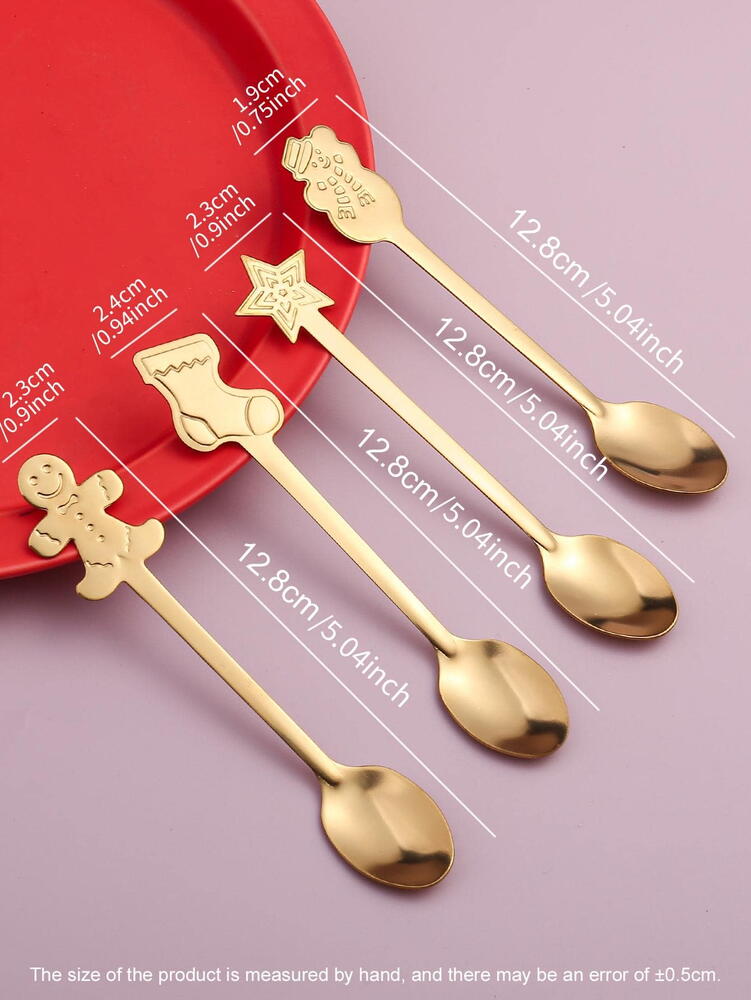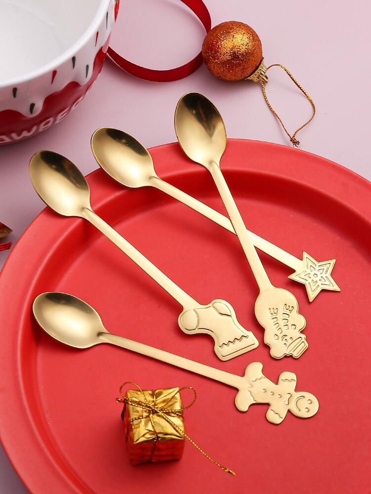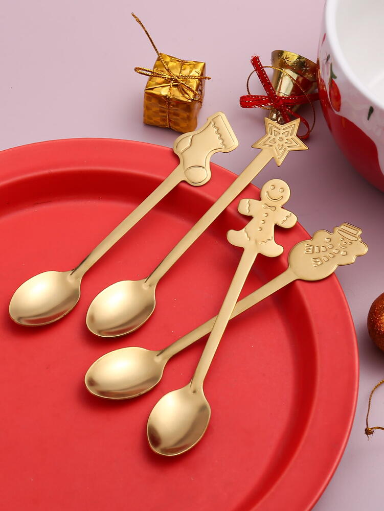 Set 4 lingurite, tematica de Craciun, Auriu