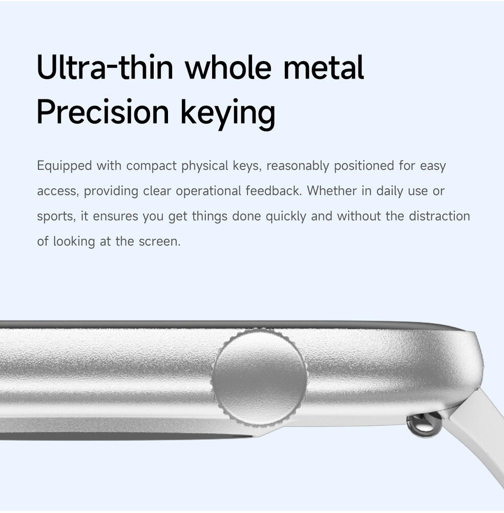 Corpul bratarii este confectionat din aliaj de zinc, cu aspect premium si dispune de senzor tactil si 1 buton fizic.